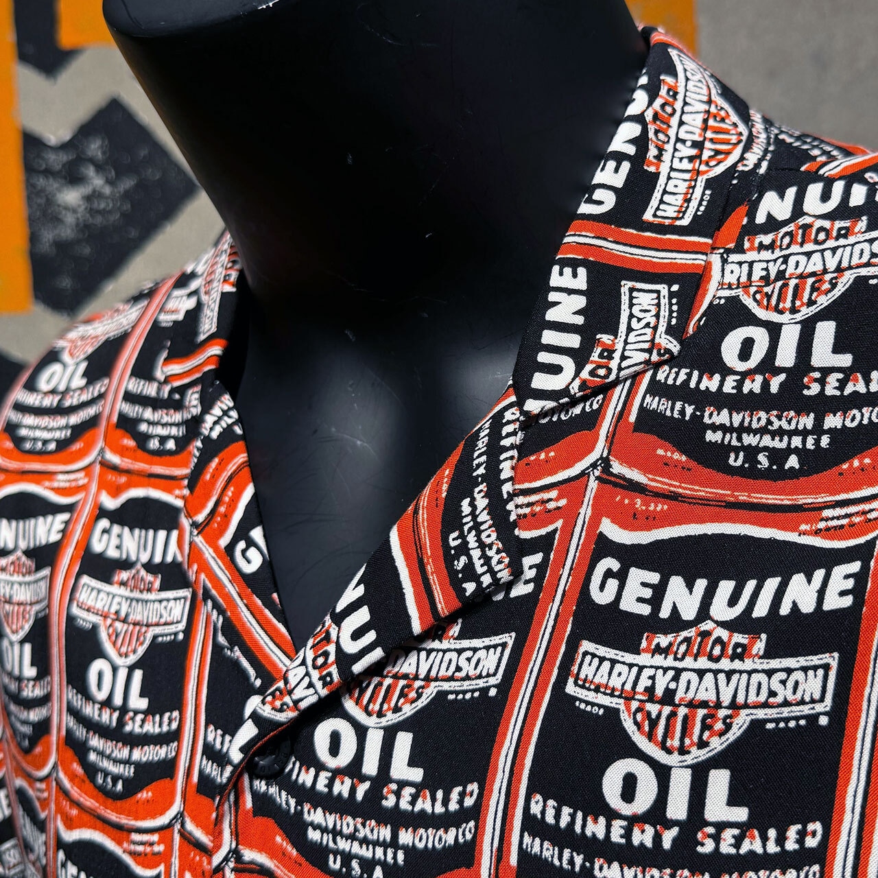 1920年代後半のオイル缶がモチーフの開襟(オープンカラー)アロハシャツです!