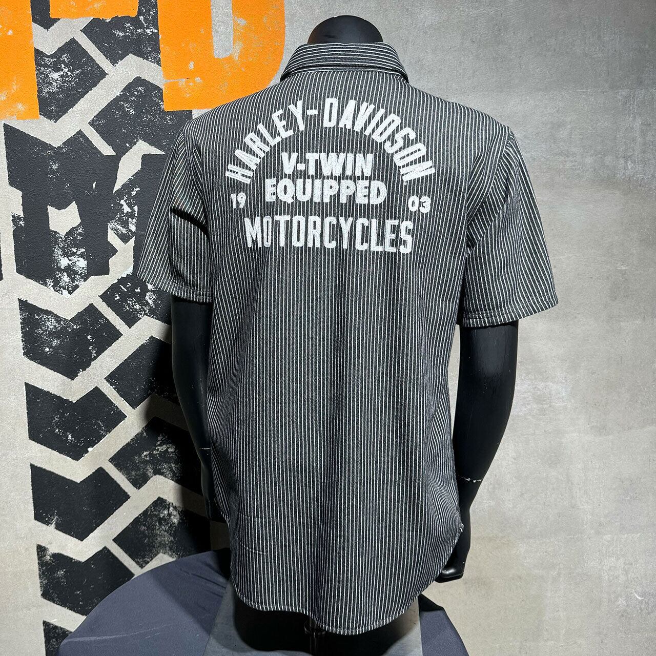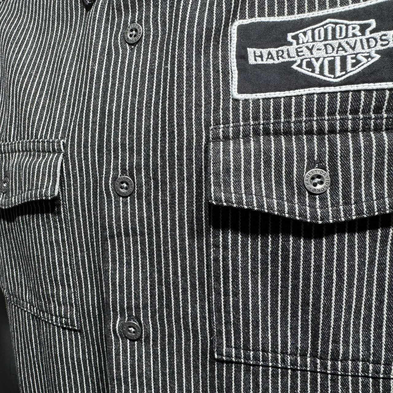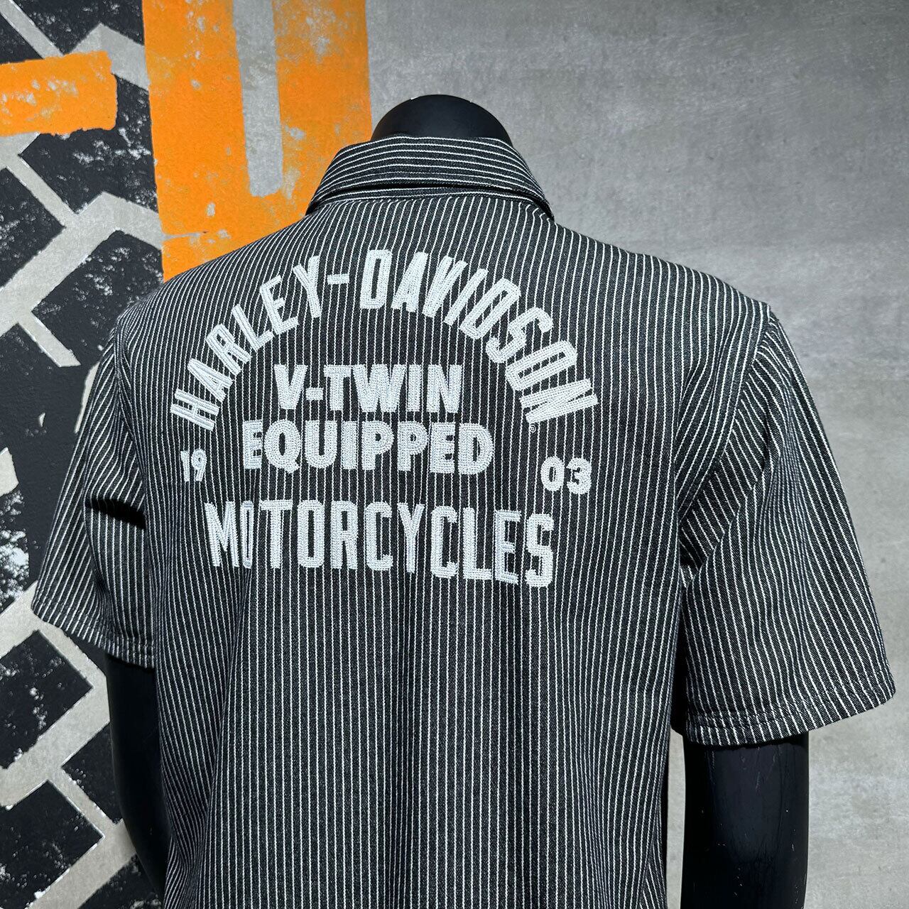 Harley-Davidson ハーレー 半袖シャツ ストライプ メカニックシャツ