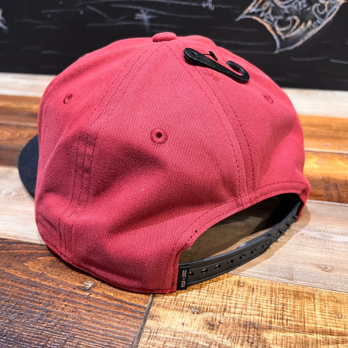 通気性の良いコットンツイルの頑丈な作り。調節可能なスナップバック。