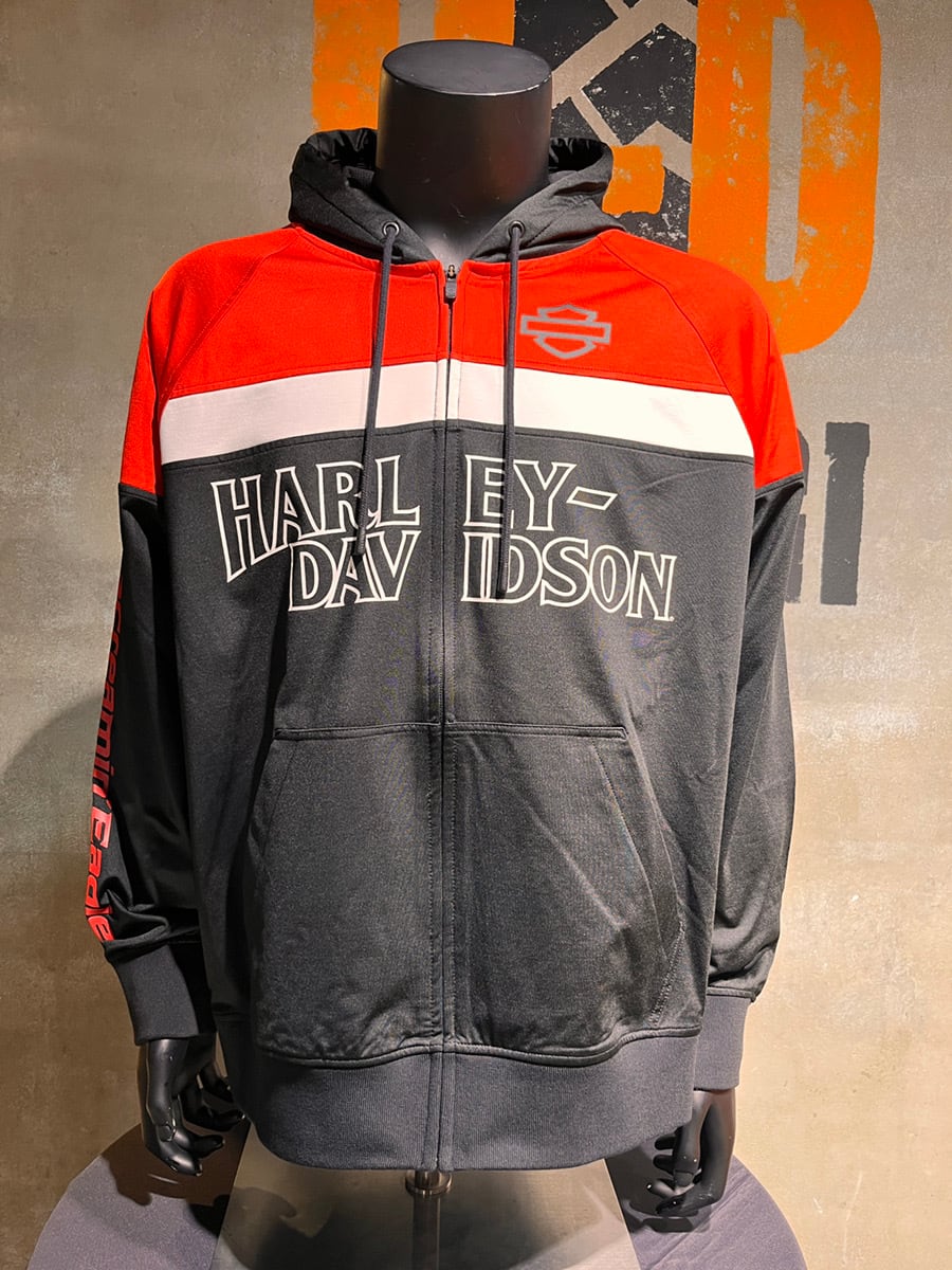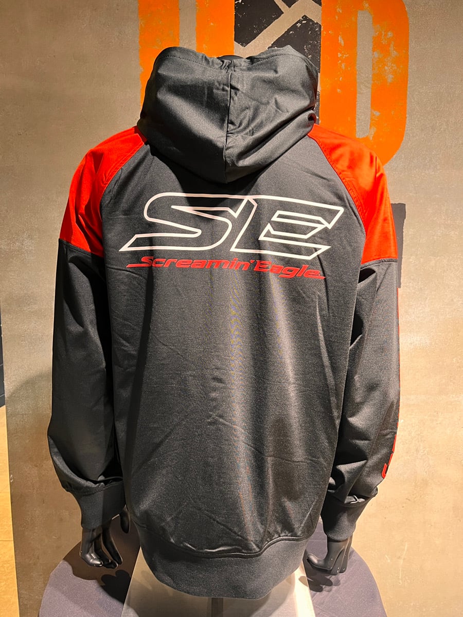 裏地付きフードは質感のある仕上がりで、ダブルグロメットでドローストリングを収納できるので、ライディングギアの下にすっきりと収納出来ます。