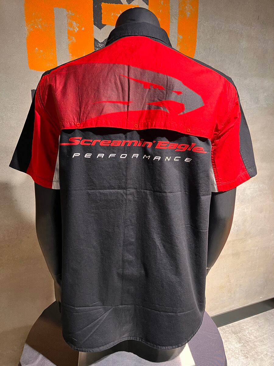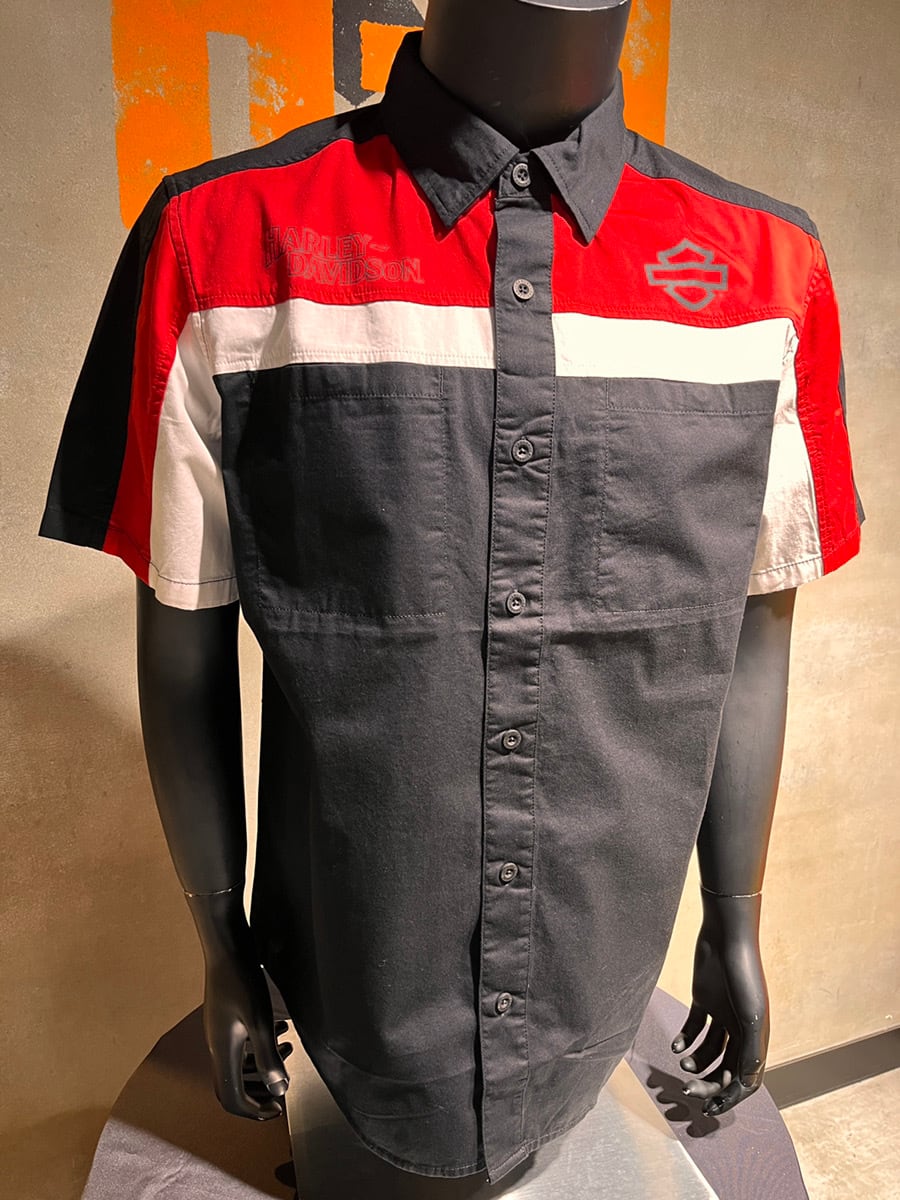 Screamin' Eagle(R) ベンテッド 半袖メカニックシャツ (カラーブロック- ホッドロッドレッド & ハーレーブラック)