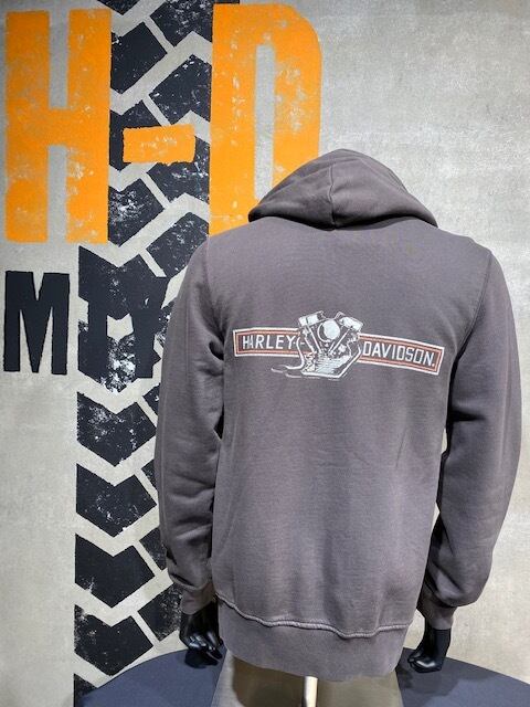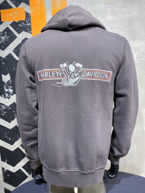 背中に「パンヘッドエンジン」がプリントされ、ヴィンテージな雰囲気のコットンフーディー。