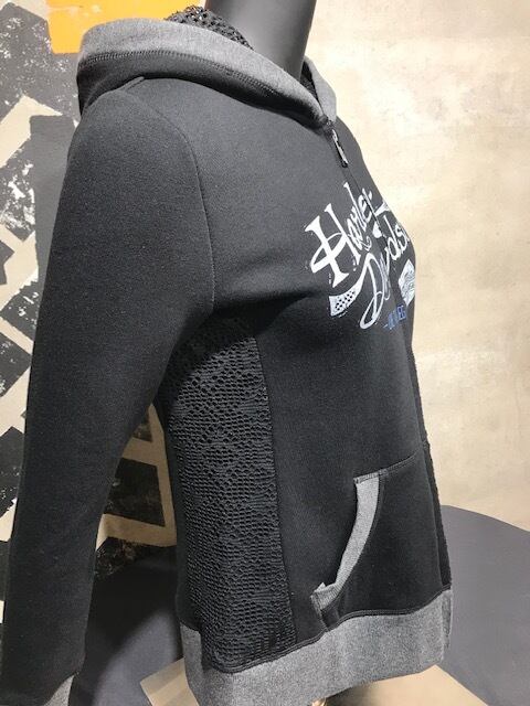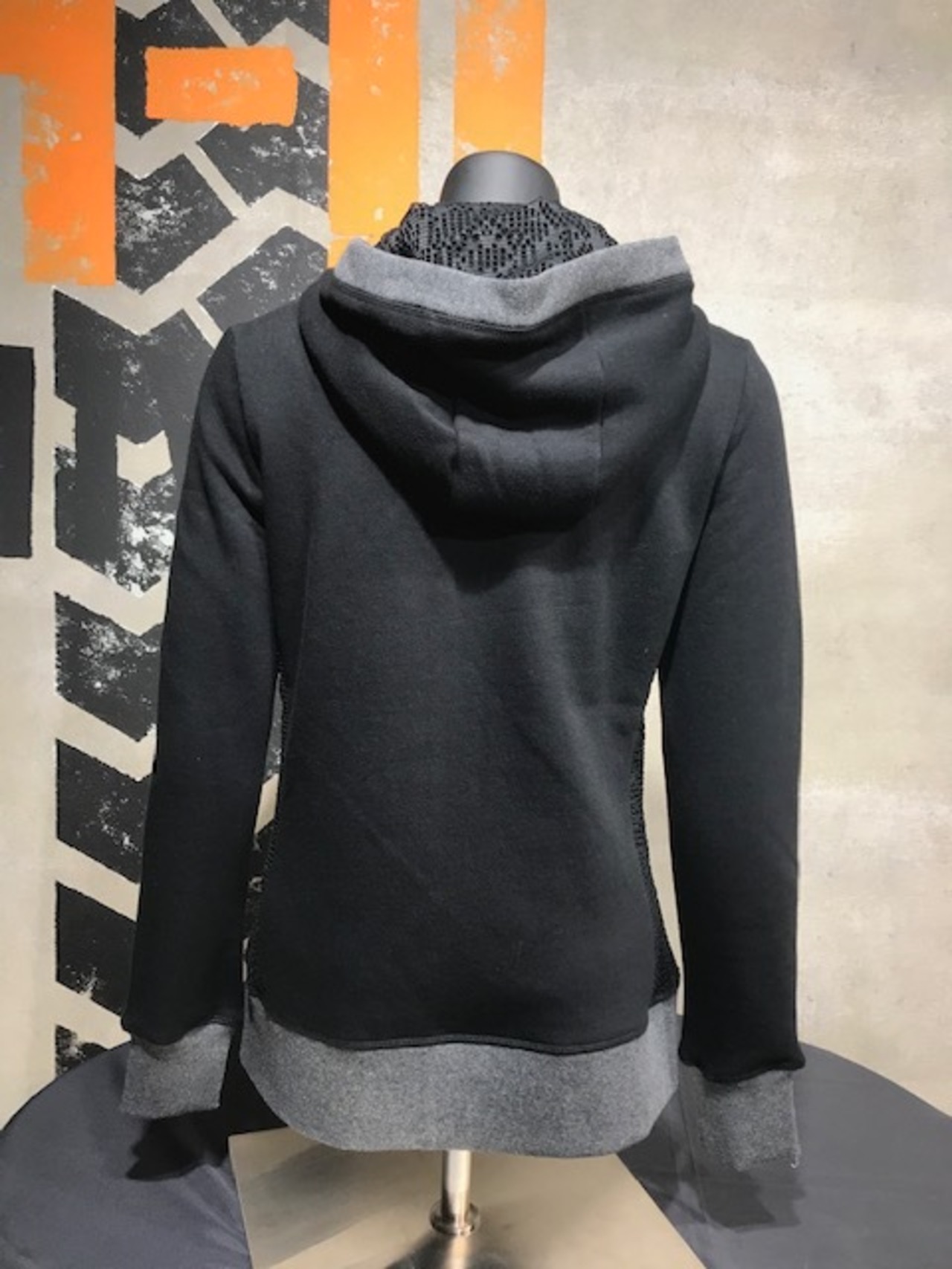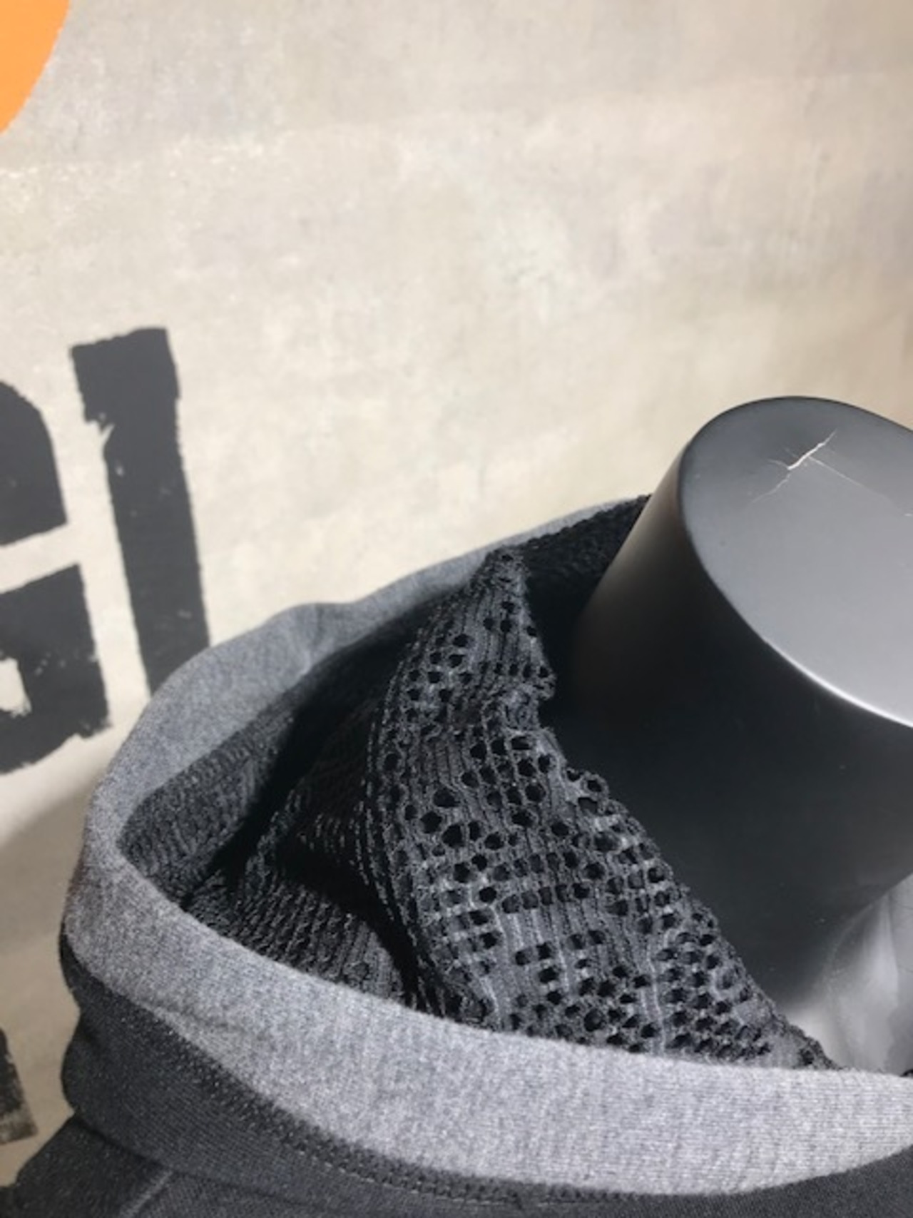 フード部分や脇ぶぶんなどにレース調の珍しい細工のある