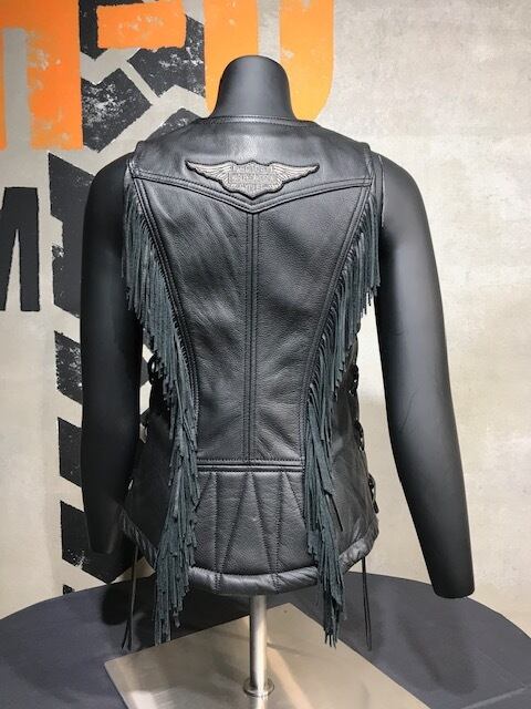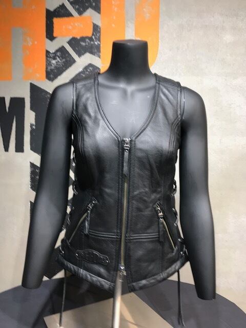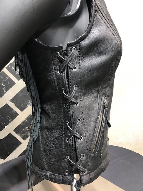腰の部分が絞ってあり、ラインが綺麗に見えるレザーベストです。