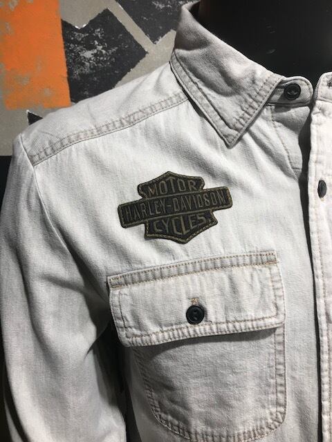 ヴィンテージ調の白に胸のワッペンがとてもオシャレです。