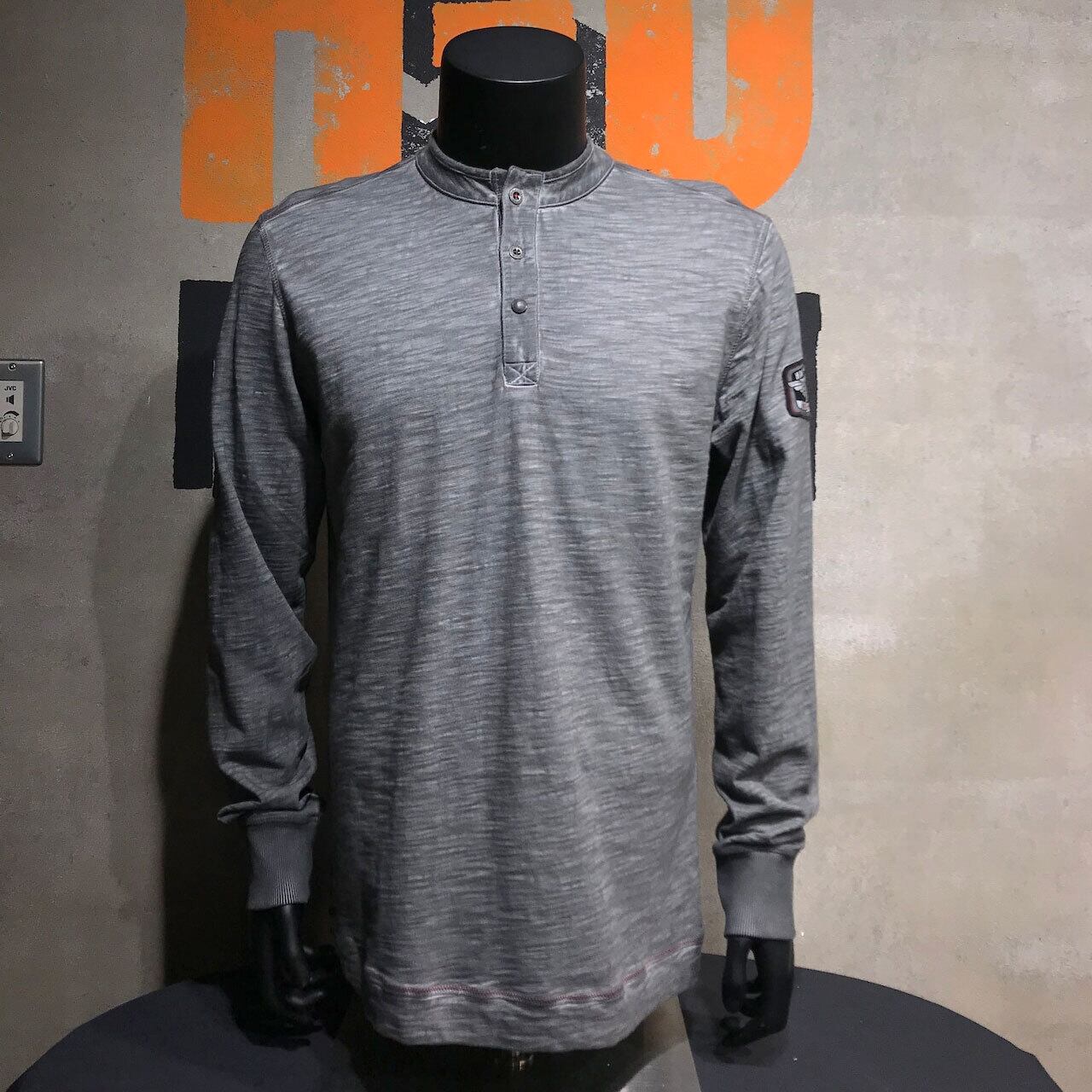 ウォッシュ加工が施された、コットン100%ジャージ生地のヘンリーネックTシャツです。