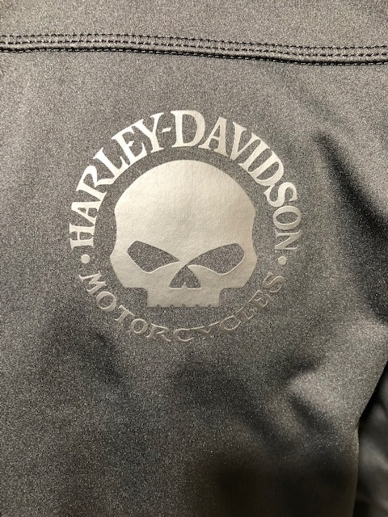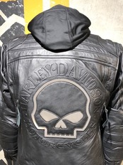 エンボス加工されたスカルのロゴが印象的なレザージャケットです。