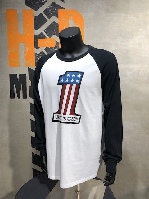 人気のナンバーワンロゴがあしらわれた長袖Tシャツ。