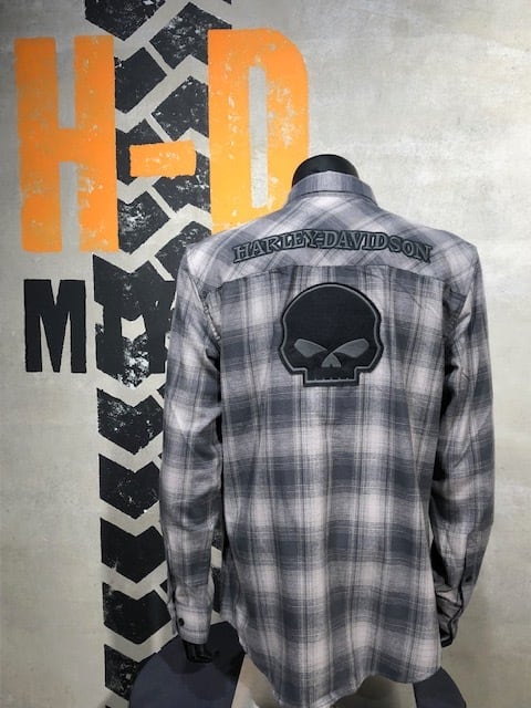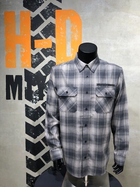 品名:スカルグラフィック・チェックシャツ(GRAY)