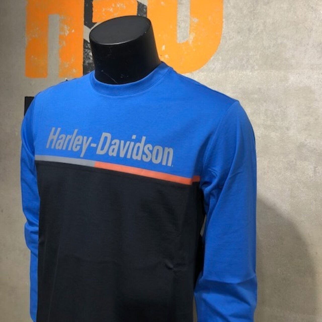 背中まで続いたブルー×ブラックのカラーブロックデザインがインパクトある一枚。