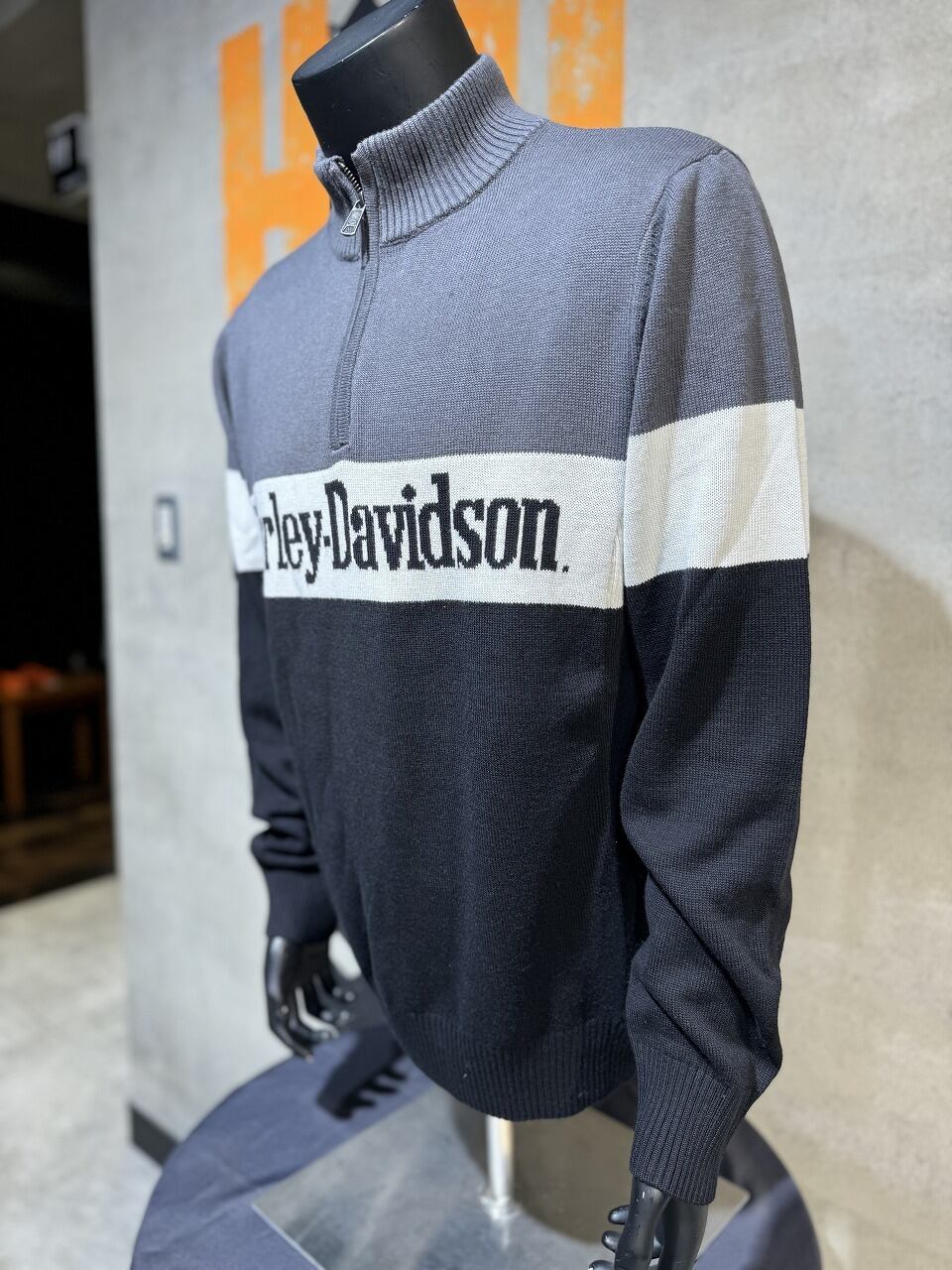 ハーレーダビッドソン セーター ニット クォータージップ (グレー×ブラック)