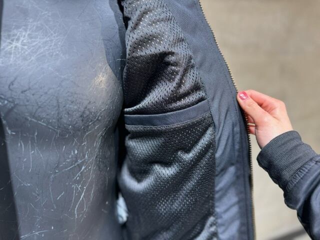 ファスナー付きのハンドウォーマーポケットと胸ポケットに加え、右内側にファスナー付きのポケットと左内側に縦長のポケットがあり収納が沢山あります。