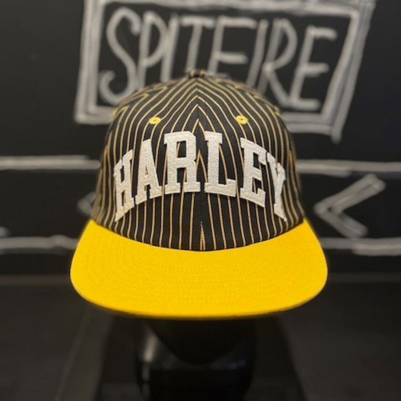 ハーレー ピンストライプキャップ フラットバイザー ストラップバック イエロー