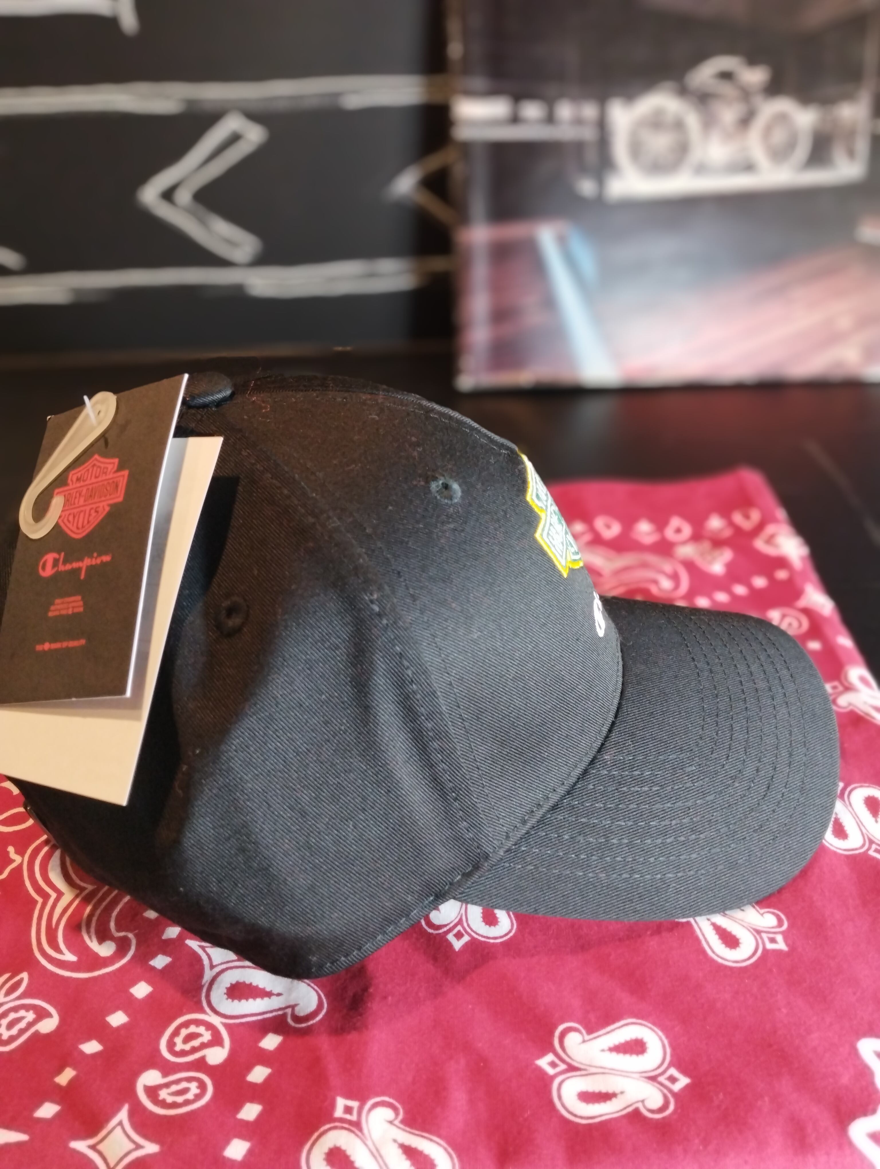 品名:Champion(R) x Harley-Davidson アジャスタブル・ベースボールキャップ(シルバ-文字&グリ-ン&イエロー)