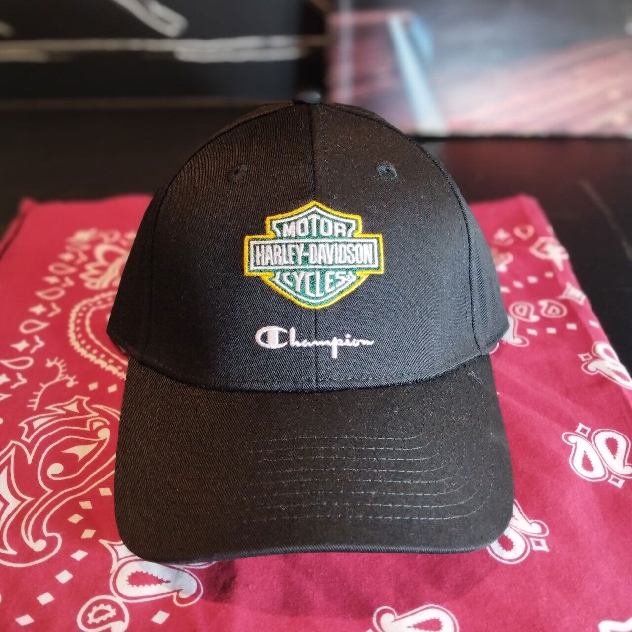 キャップ ストラップバック カーブバイザー チャンピオン ハーレー Champion×HD アジャスタブル ベ-スボ-ルキャップ(シルバ-文字&グリ-ン&イエロー)